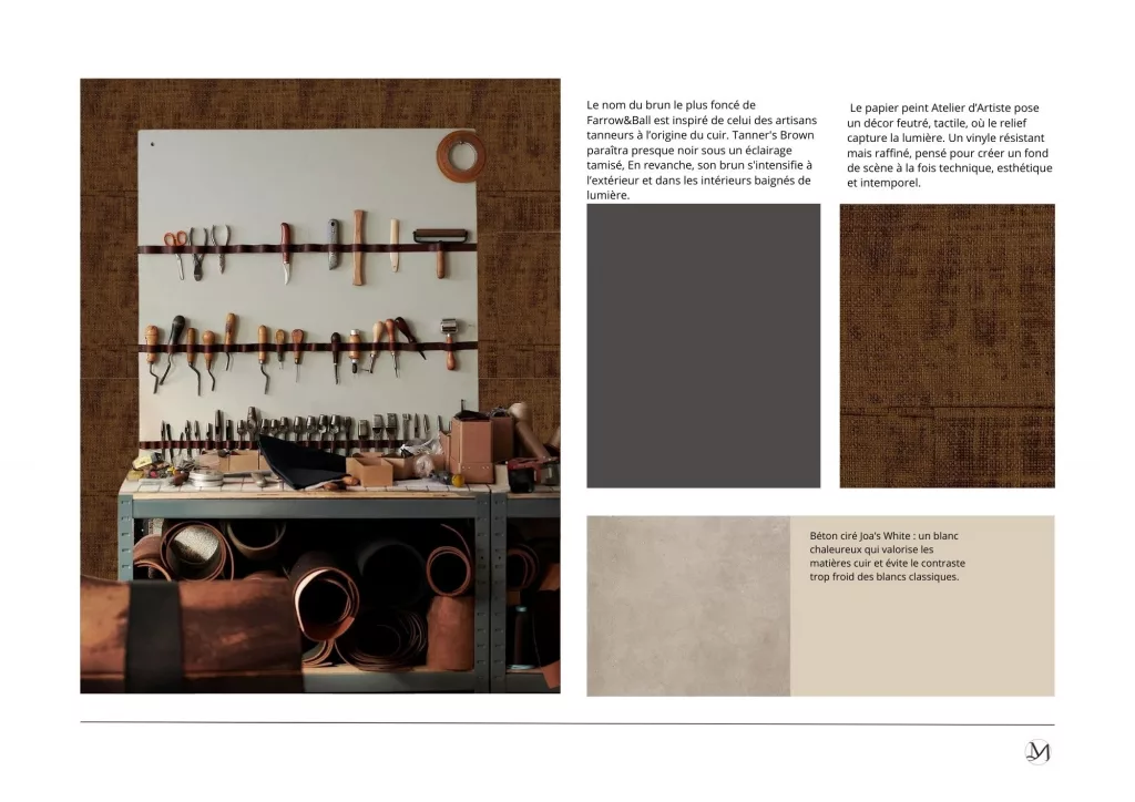 Un atelier qui emprunte au club anglais ses bruns profonds, ses textures et sa douceur enveloppant.